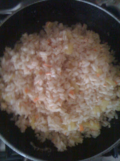Primo: Risotto con gamberetti, surimi ed ananas
